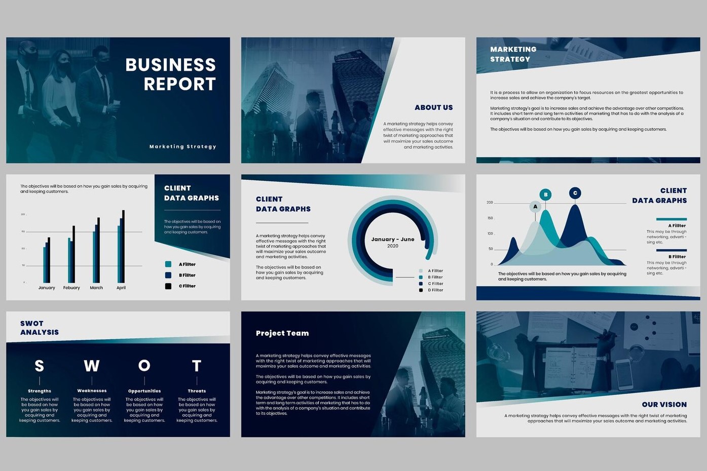 This presentation template focuses on infographic-style layouts to explain ideas visually. Includes charts, timelines, process diagrams, and icons to make content more engaging and easy to understand.